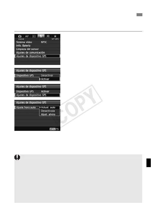 Se puede ajustar la hora de la cámara utilizando señales GPS. El