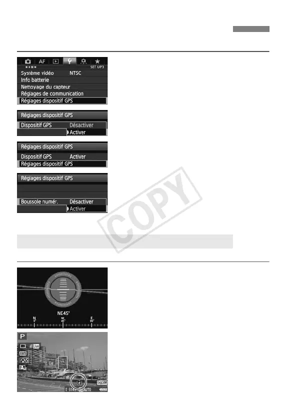 Vous pouvez voir dans quelle direction l’appareil photo est tourné pendant la prise de vue.