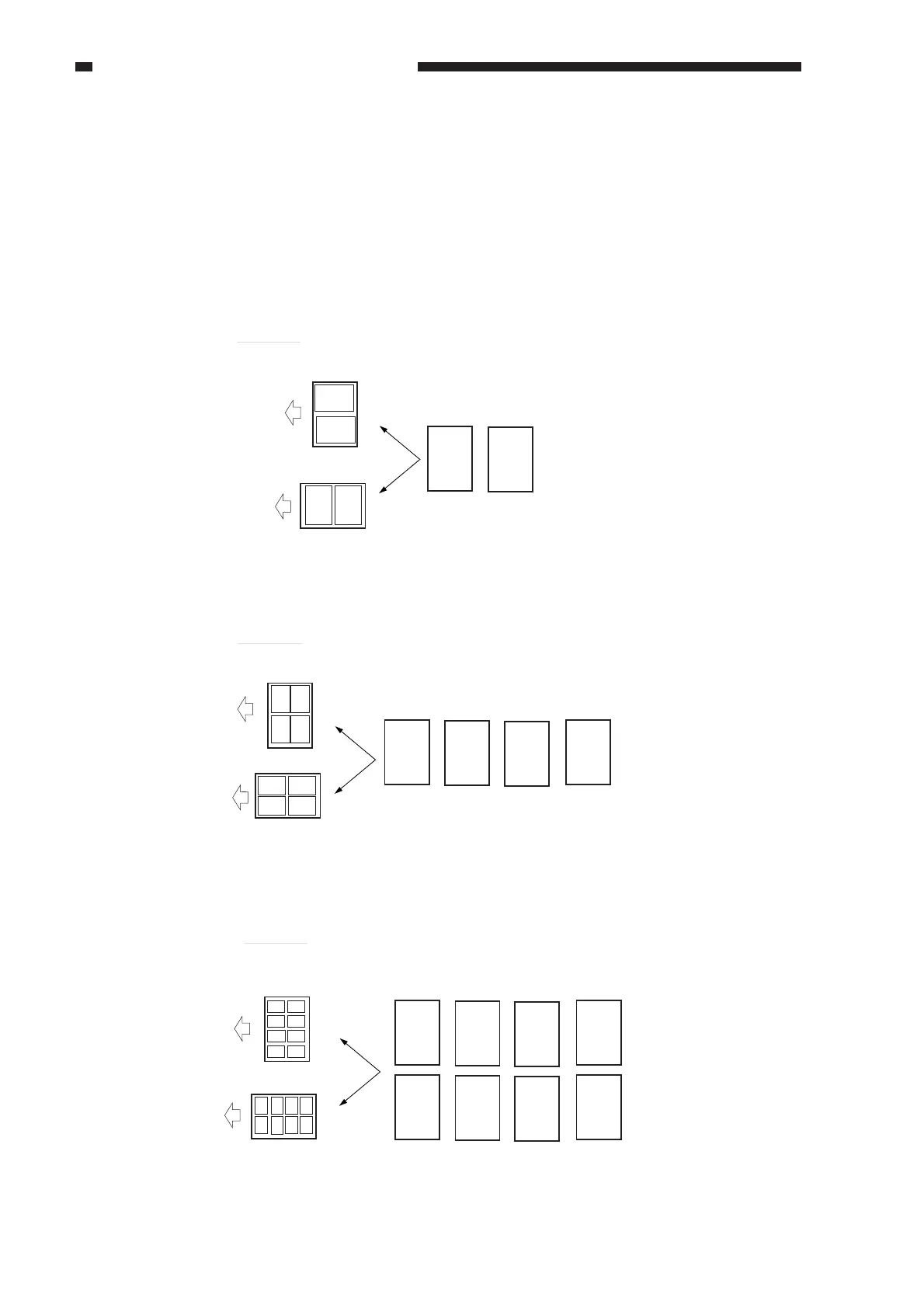 2. 4-on-1 mode, in which four originals are copied by reduction on one sheet of copy appear.