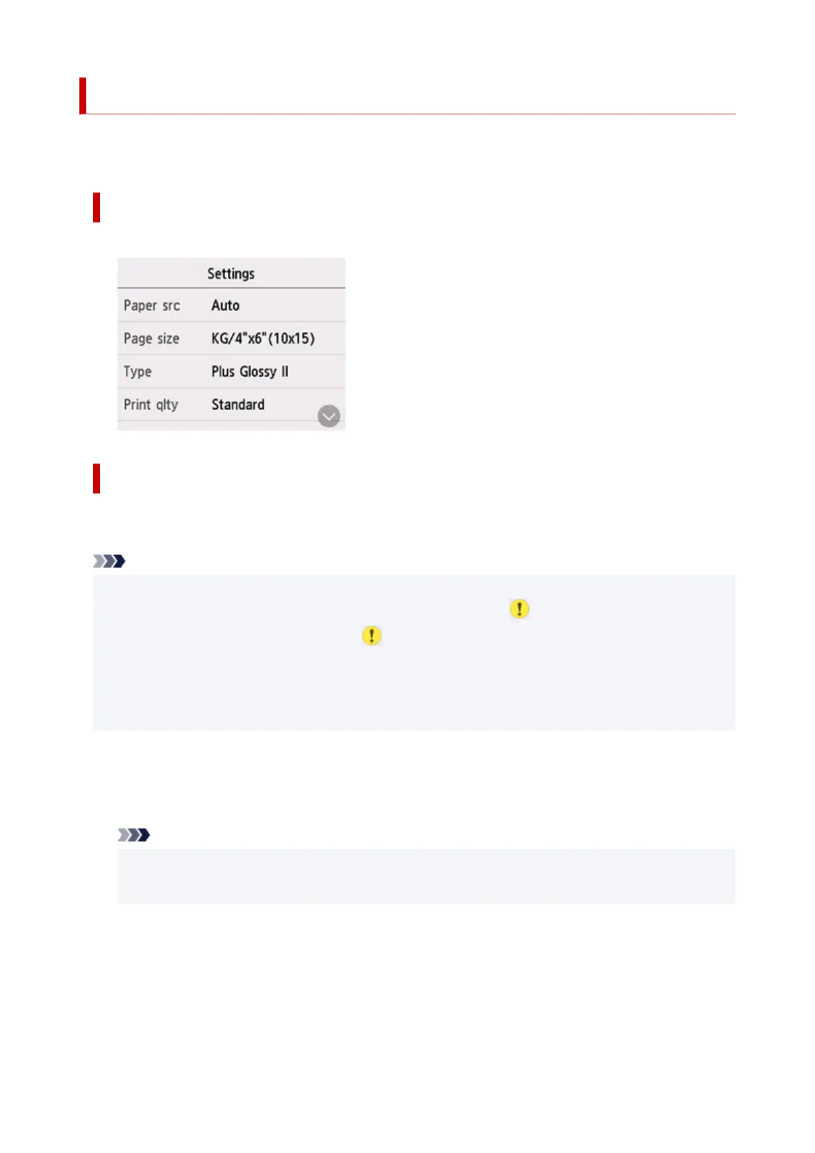 • The settings of the page size, media type, etc. are retained even if another print menu is selected or