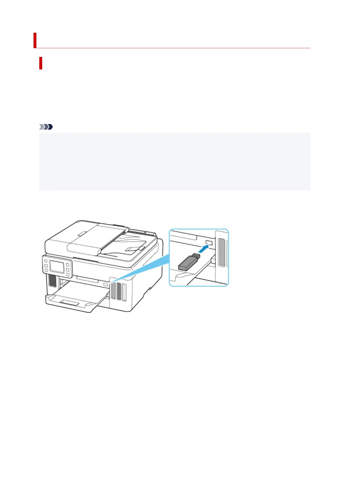• Not all USB flash drives may be detected by the printer, and correct operation is not guaranteed.