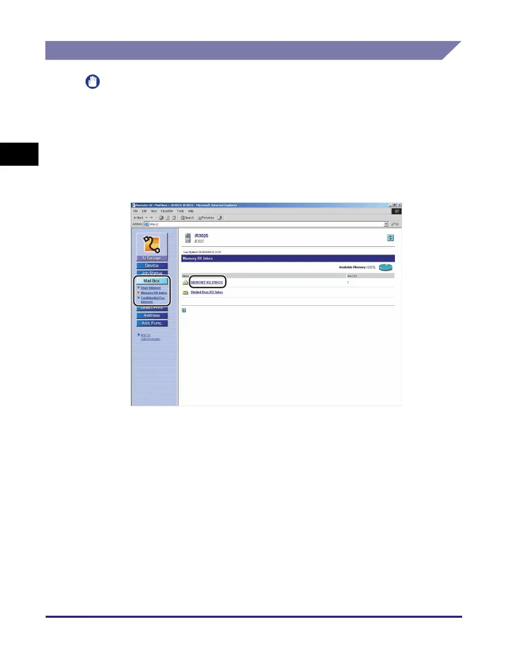 that appears under [Mail Box] ➞ click [MEMORY RX INBOX].