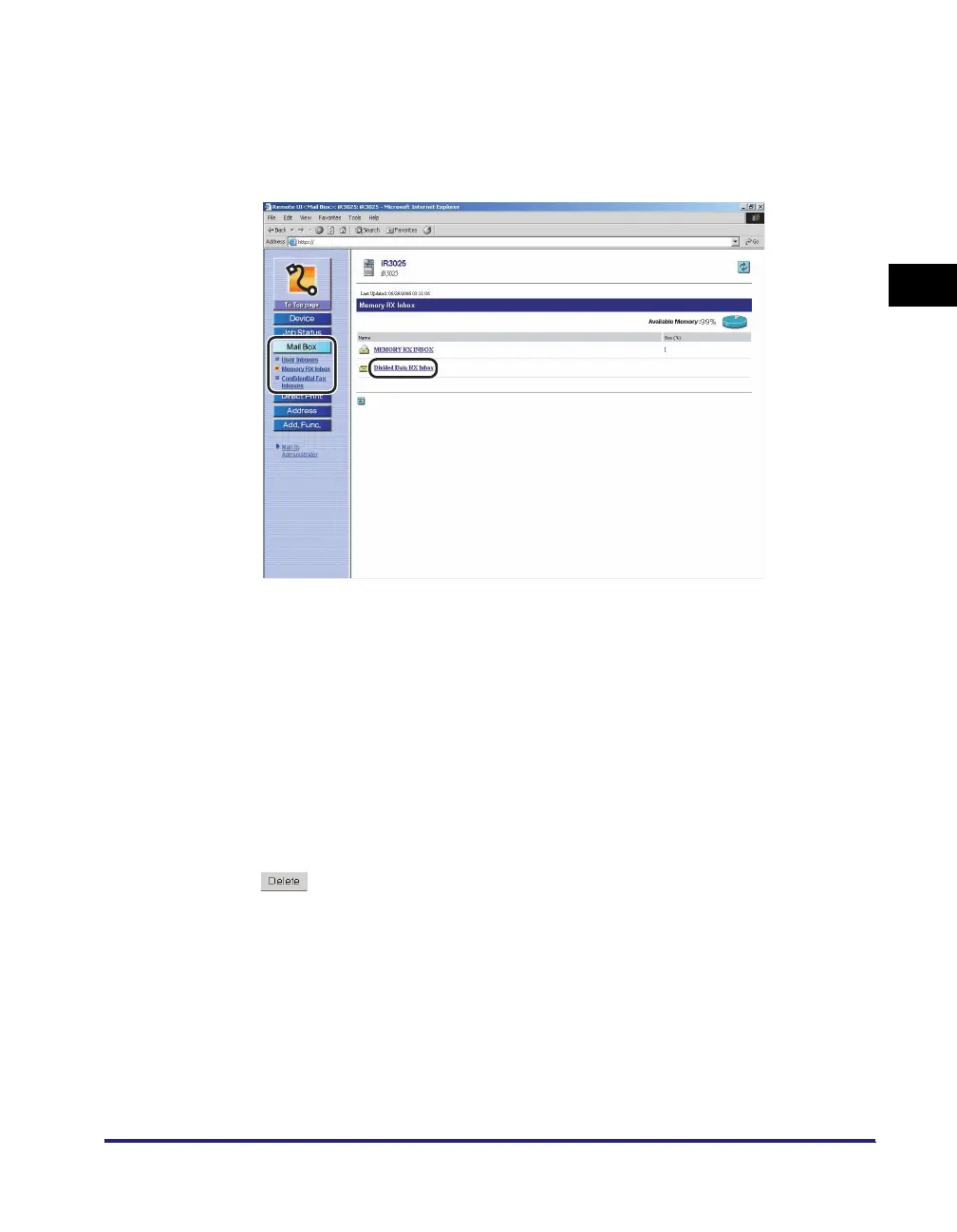 Click [Mail Box] ➞ select [Memory RX Inbox] from the menu
