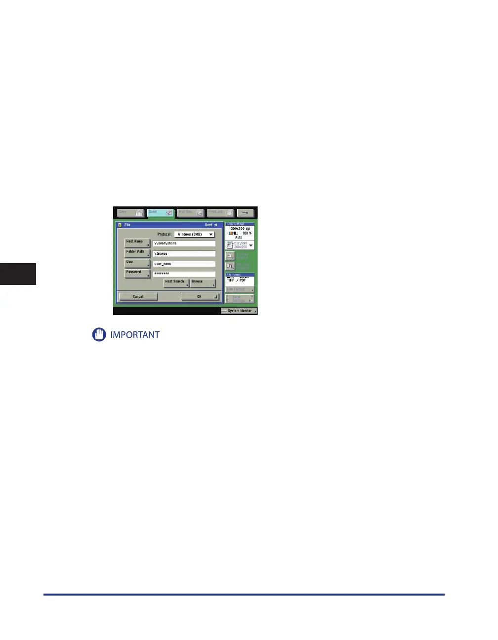 If you change the language of the touch panel display, [Host Name] and [Folder Path] may not be displayed