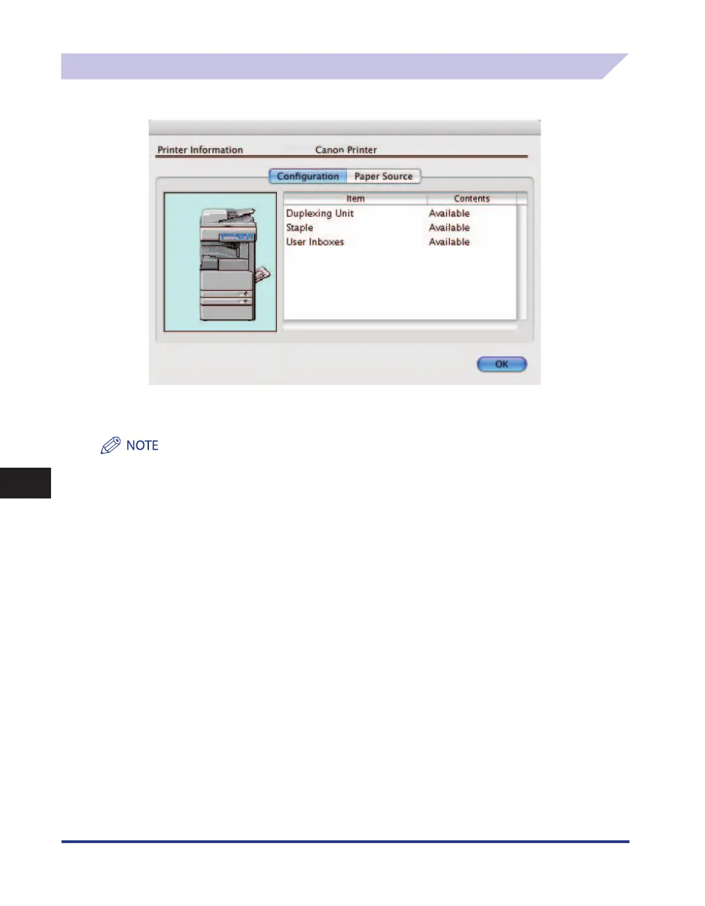 The [Printer Information] dialog box is displayed by clicking [Printer Info] in any of the preferences