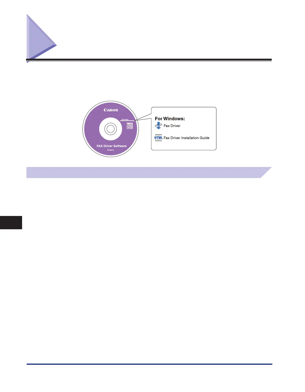 Install the fax driver from the FAX Driver Software CD-ROM. The contents of the CD-ROM are as