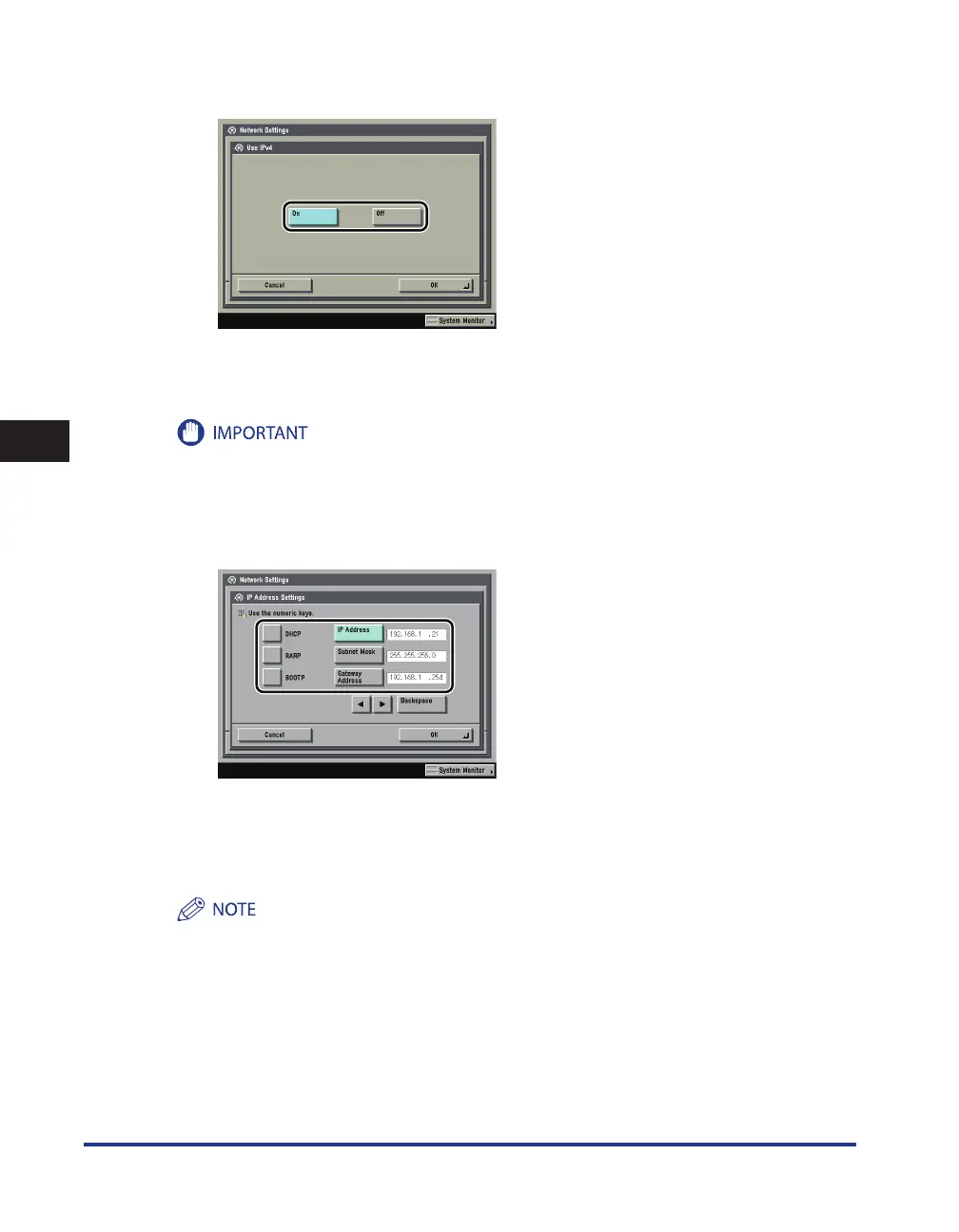 [Off ] for <Use IPv4>: IPv4 networks cannot be used, regardless of the settings specified for IPv4 on the
