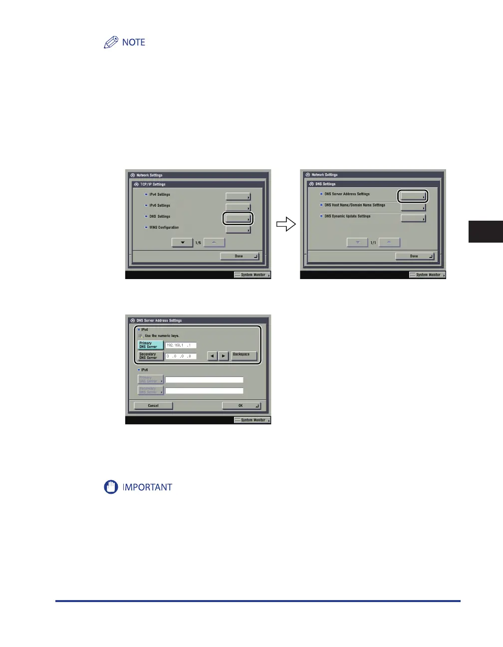 On the TCP/IP Settings screen, press [ DNS Settings]