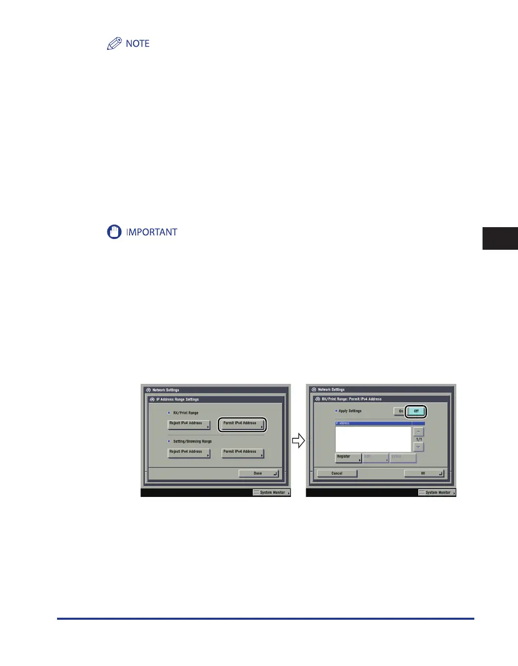 < Apply Settings> of [ Permit IPv4 Address ] for < RX/Print Range >: [Off ]