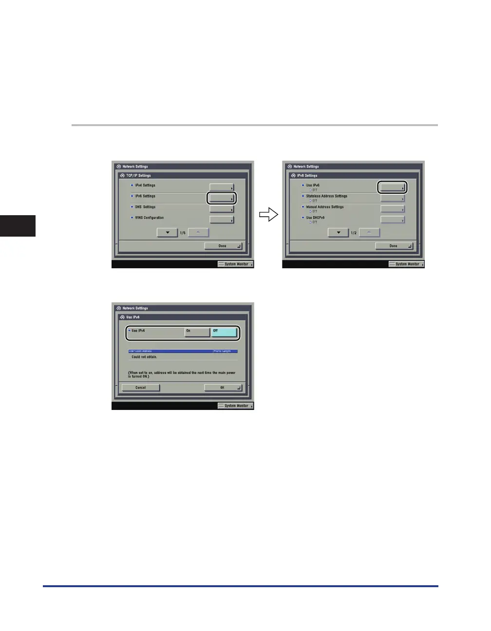 On the TCP/IP Settings screen, press [IPv6 Settings]