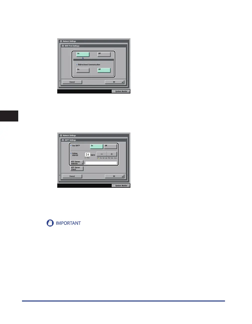 Exchange) authentication when performing IPSec communication, it is necessary to set <Use SNTP> to 'On'.