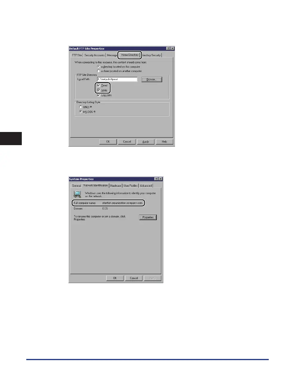 In the [Default FTP Site Properties] dialog box, on the [Home Directory]