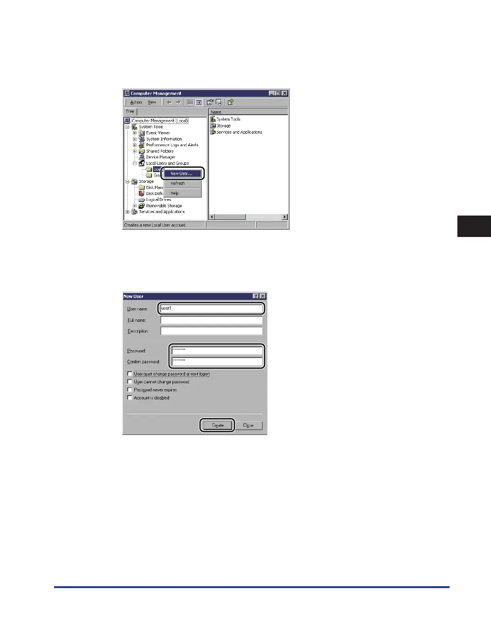 In the [New User] dialog box, enter the user name in [User name]
