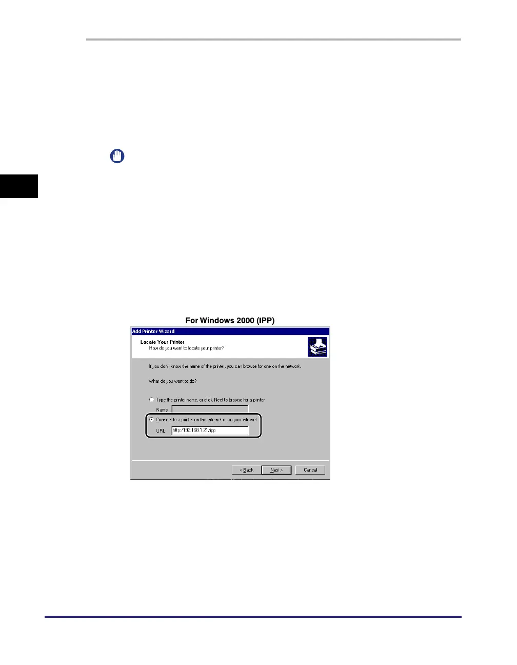 If you want to use regular IPP printing, enter the following URL in [URL].