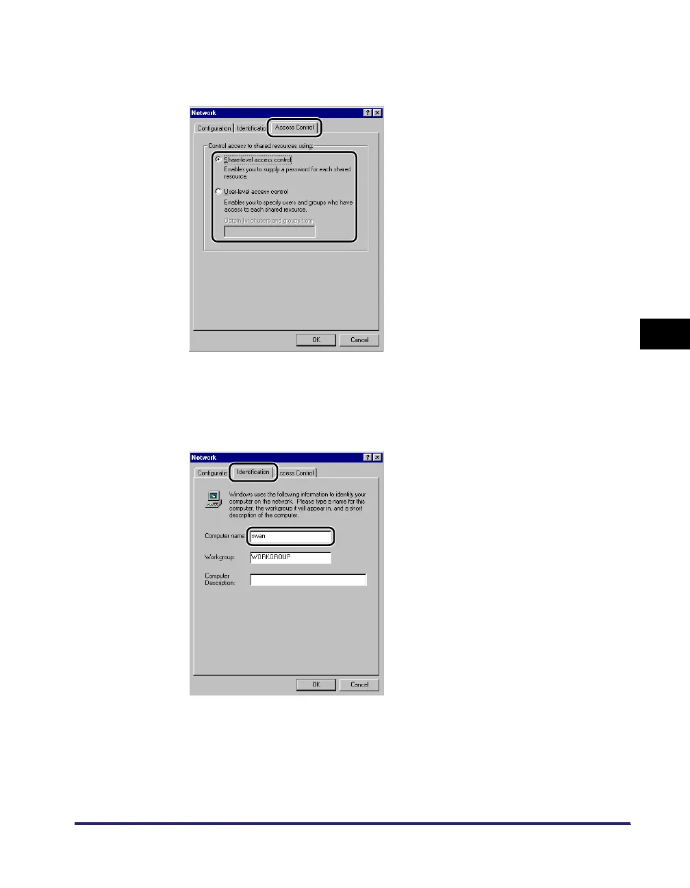 On the [Identification] sheet, confirm the computer name.