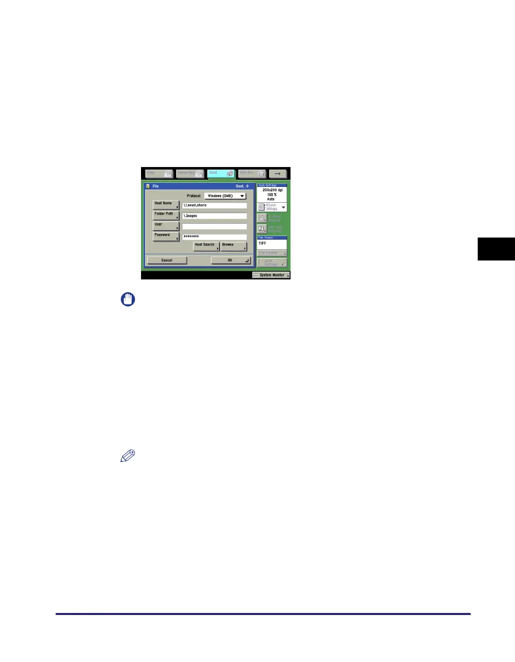 If you change the language of the touch panel display, [Host Name] and [Folder