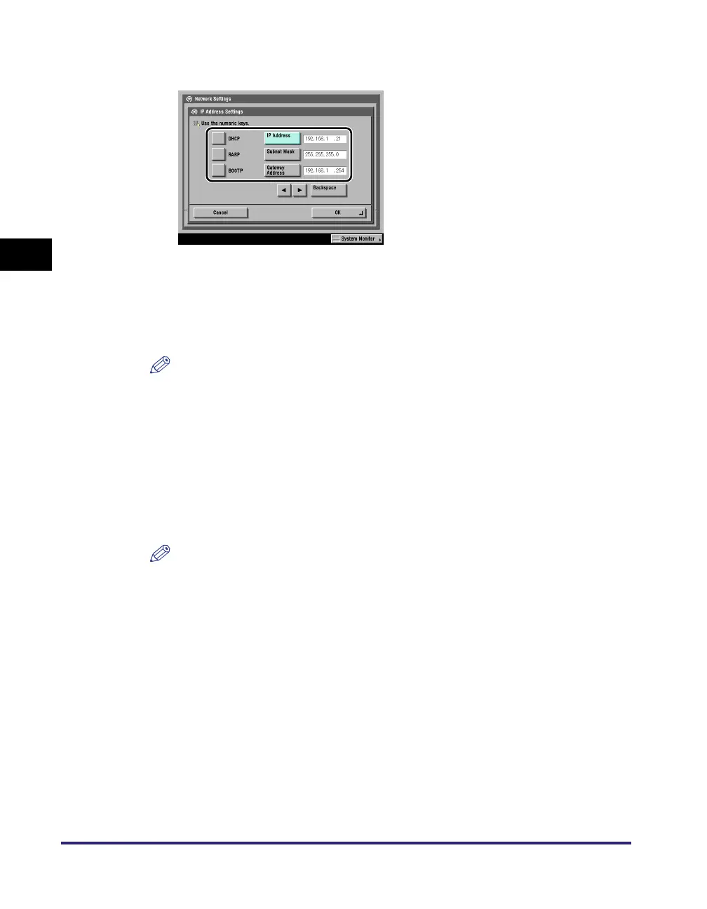 If the machine is restarted after DHCP, BOOTP, or RARP settings are specified, the