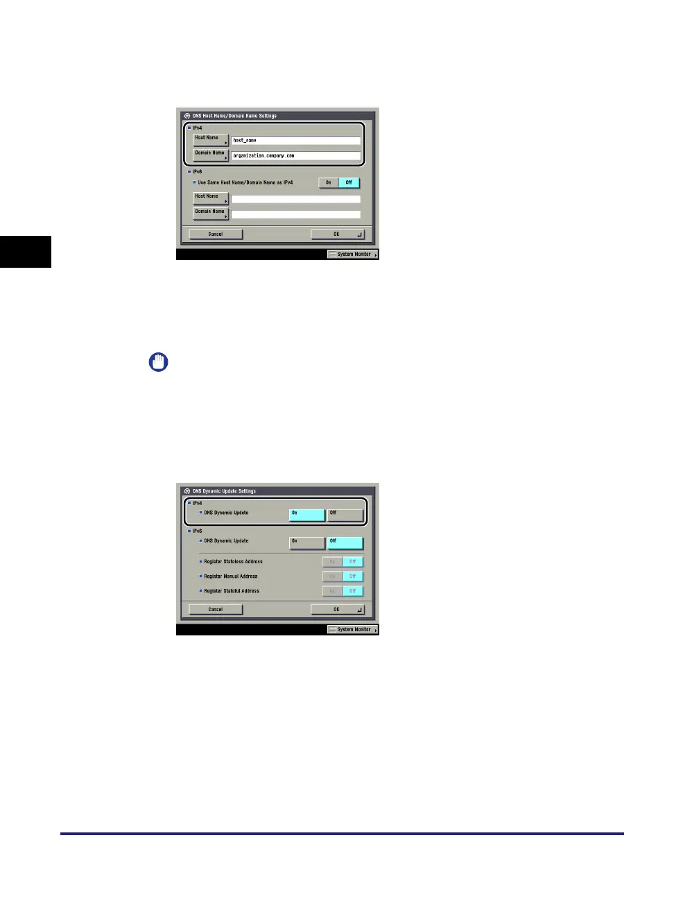 On the DNS Settings screen, press [DNS Host Name/Domain