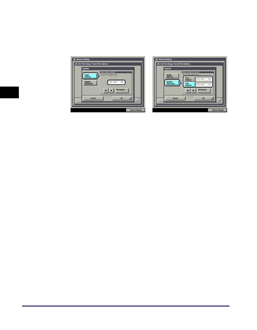 Press [Register]➞ store only one IPv4 address or a range of IPv4 addresses