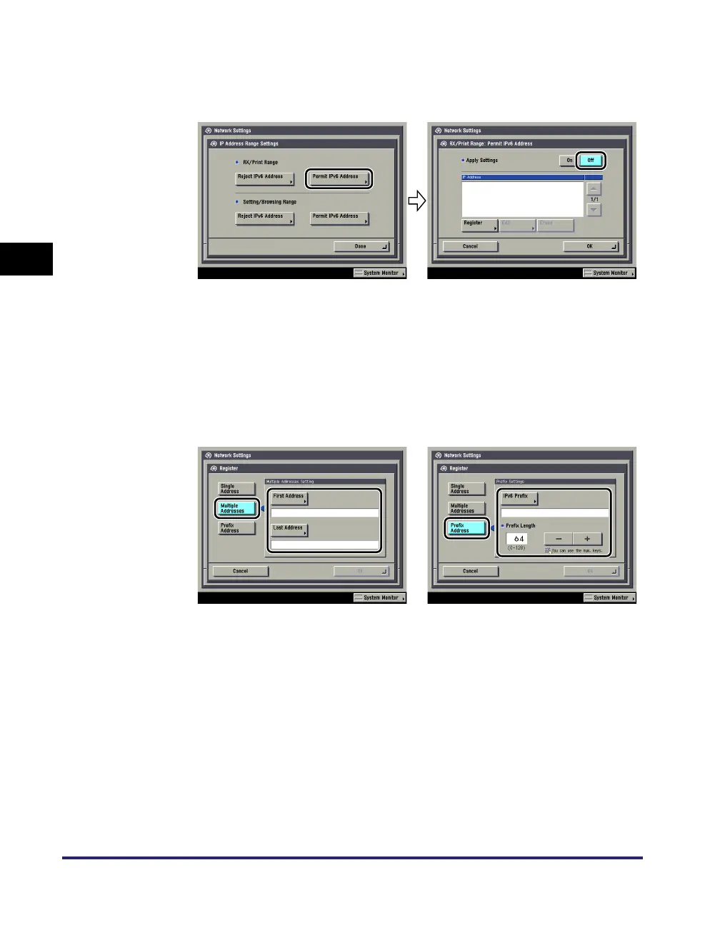 <Apply Settings> of [Permit IPv6 Address] for <RX/Print Range>: [On]