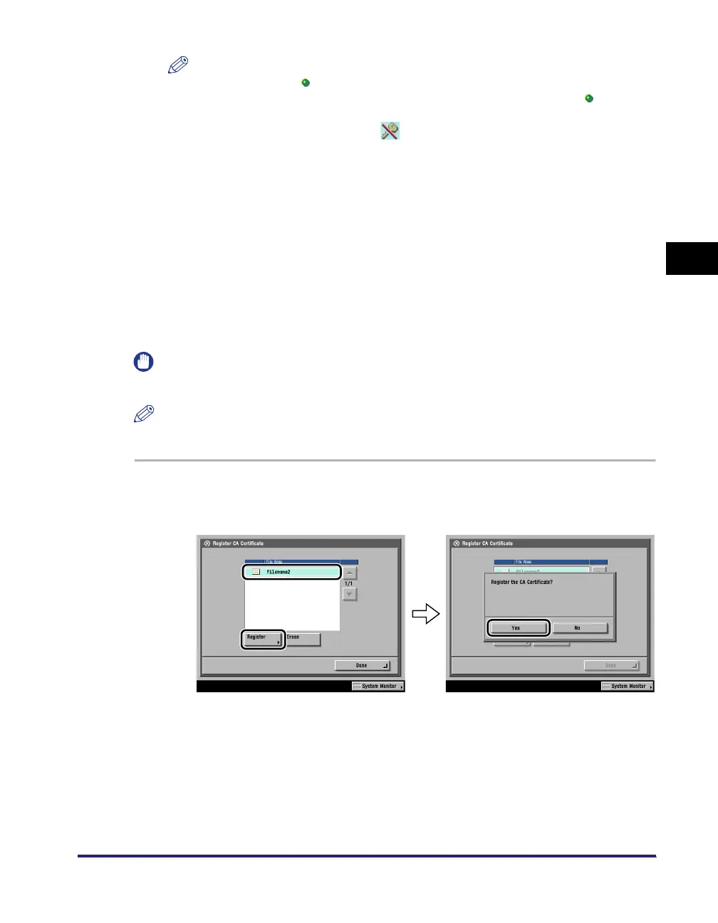 To confirm the CA certificate you have registered, see "Editing a CA Certificate,"