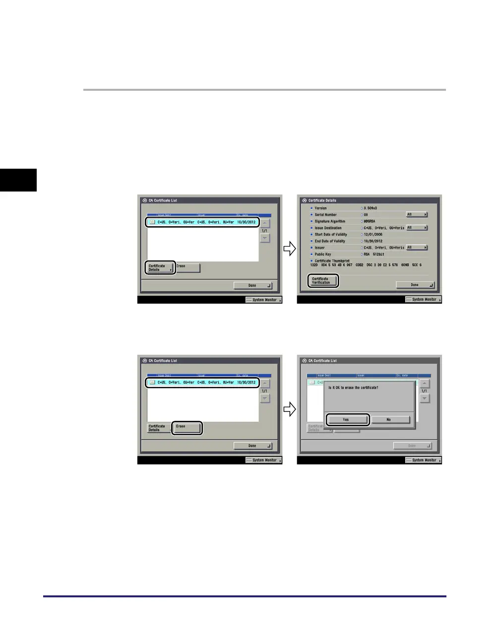 Select the key pair for the CA certificate you want to confirm ➞ press