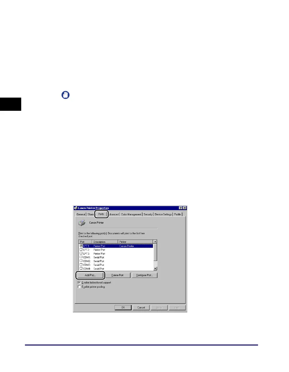 For instructions on how to install Canon LPR2 and set ports, see the