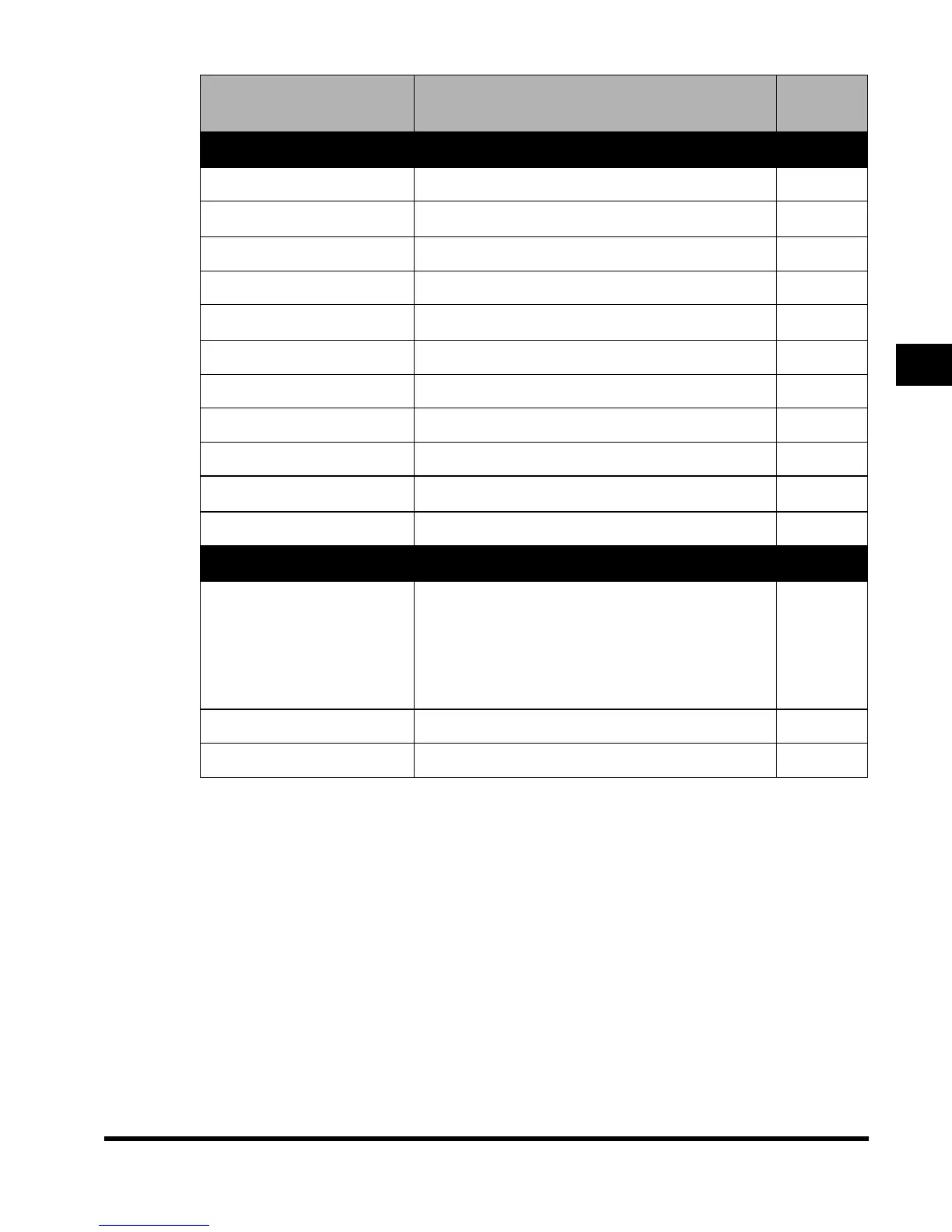 Additional Functions Settings Table