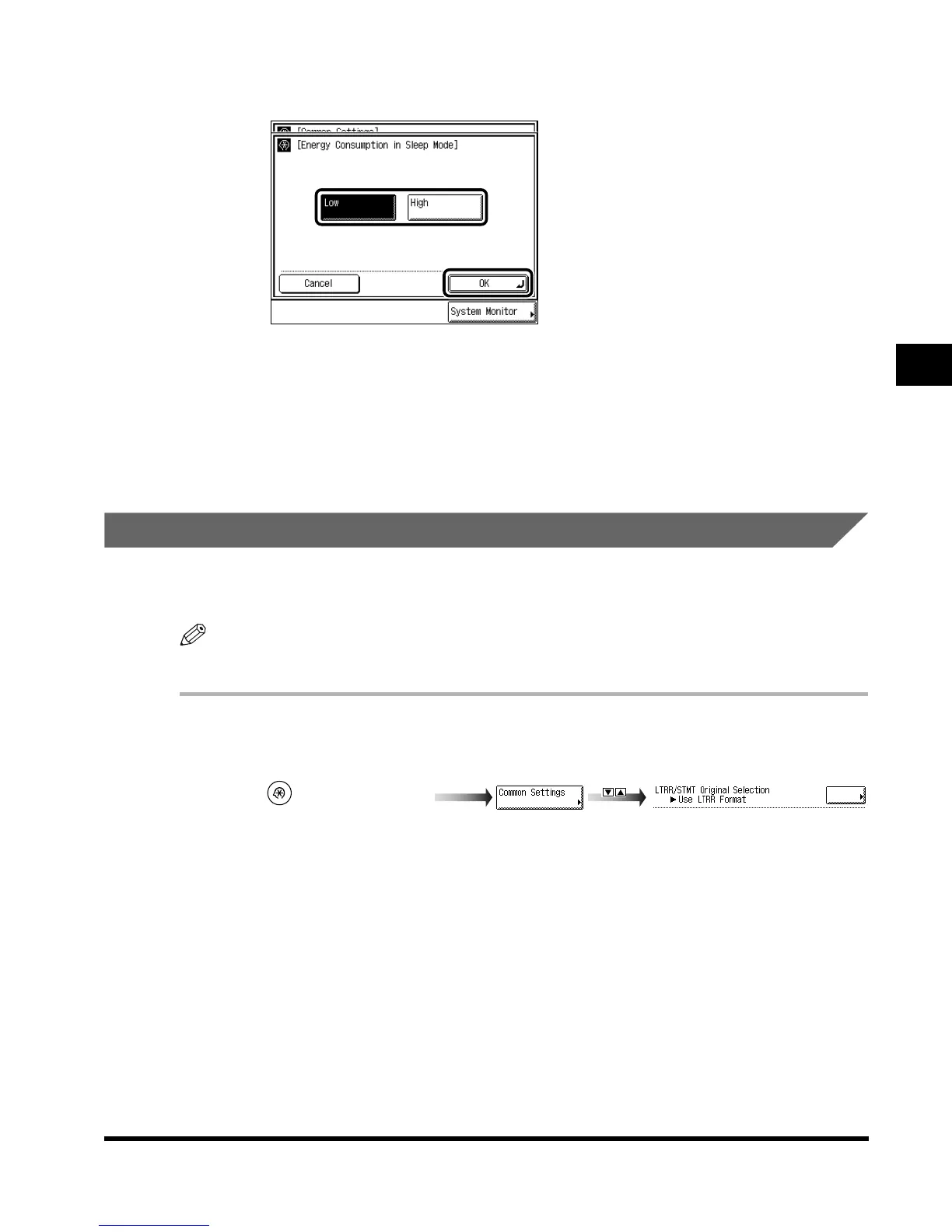 You can designate the way the machine handles LTRR-size or STMT-size originals placed on