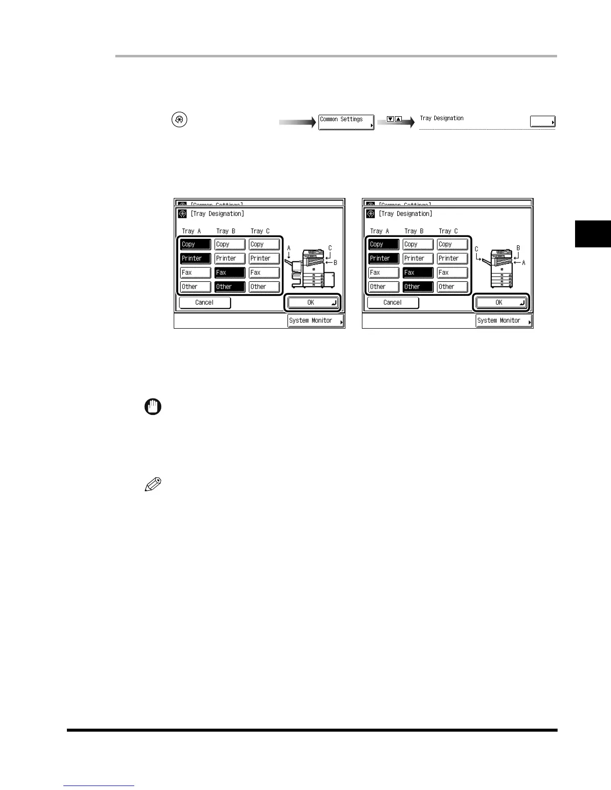 In the case that the Saddle Finisher-G1 is not attached, Tray C can only be assigned to a