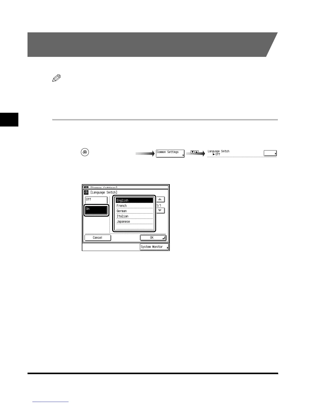 • When Language Switch is set to “On,” some characters will be restricted and not be able to be