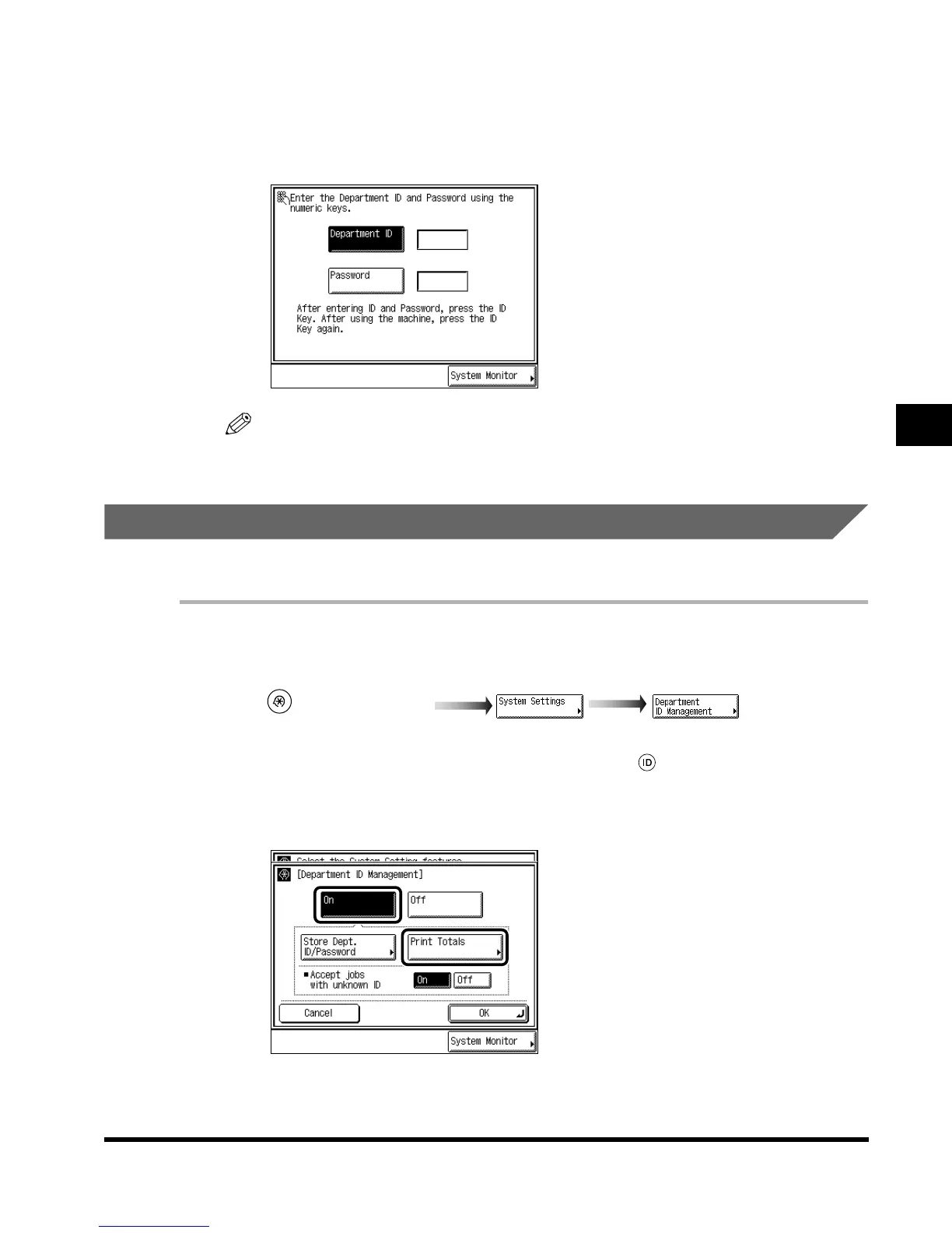 For details of how to enter the Department ID and Password, see ‘Entering the Department ID