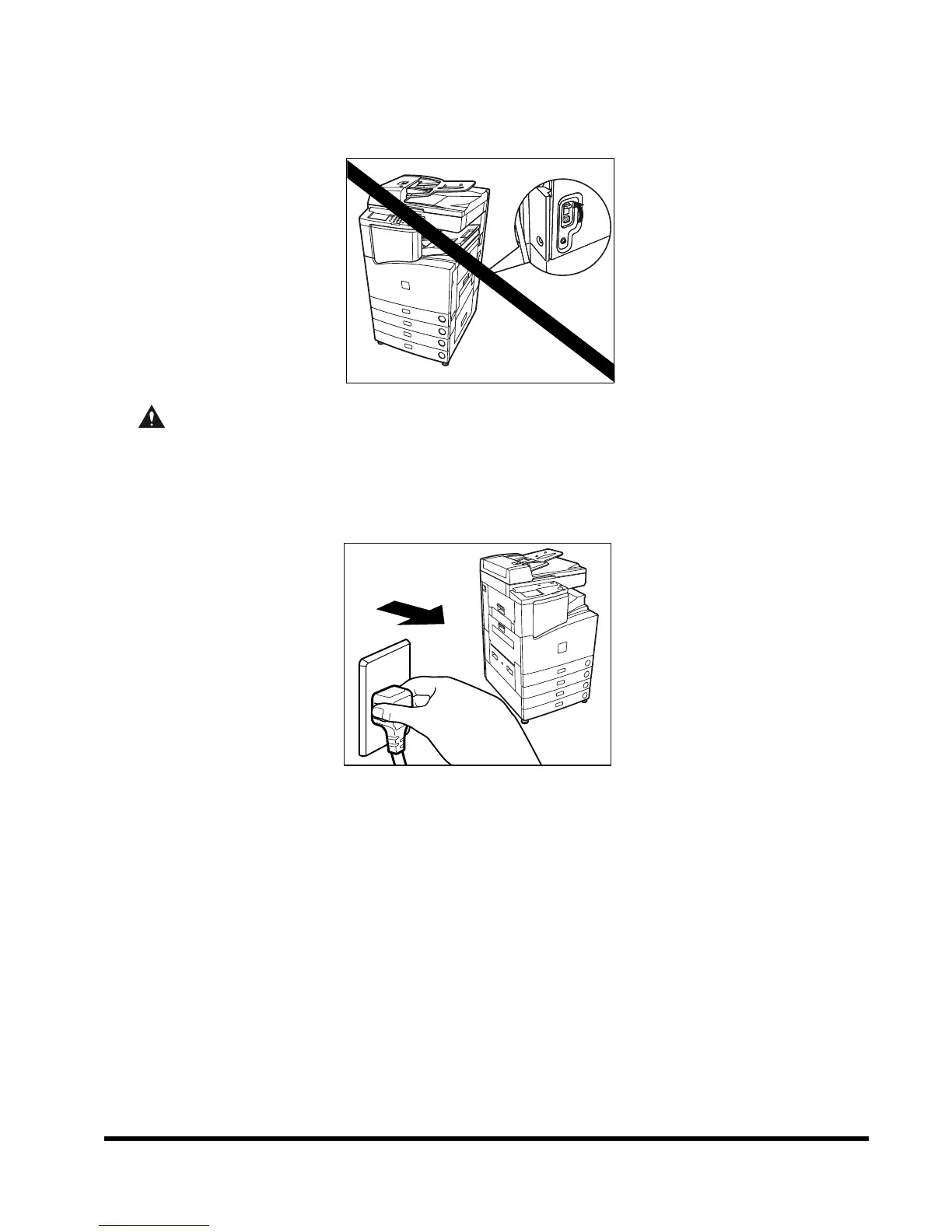 • If the breaker drops to the OFF position when you turn on the power switch or when the copier