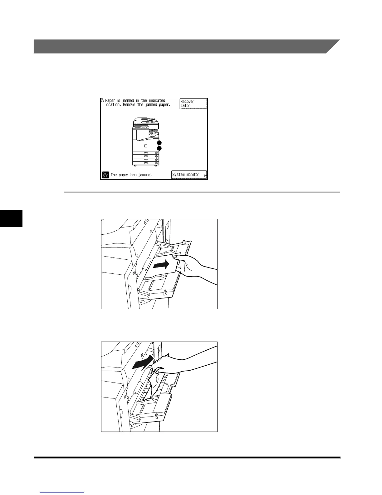 on the touch panel display. Check where the jam occurred, and follow the procedure