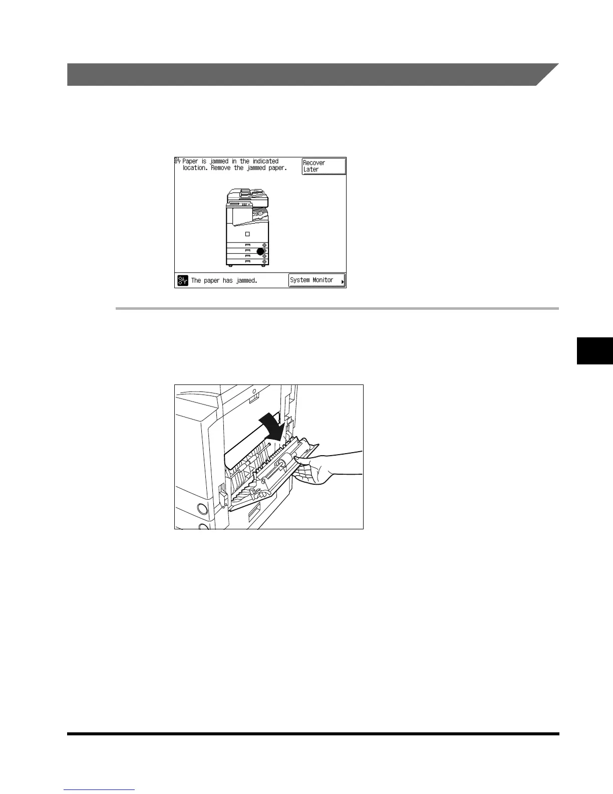below and the procedure that appears on the touch panel display, to remove the jammed