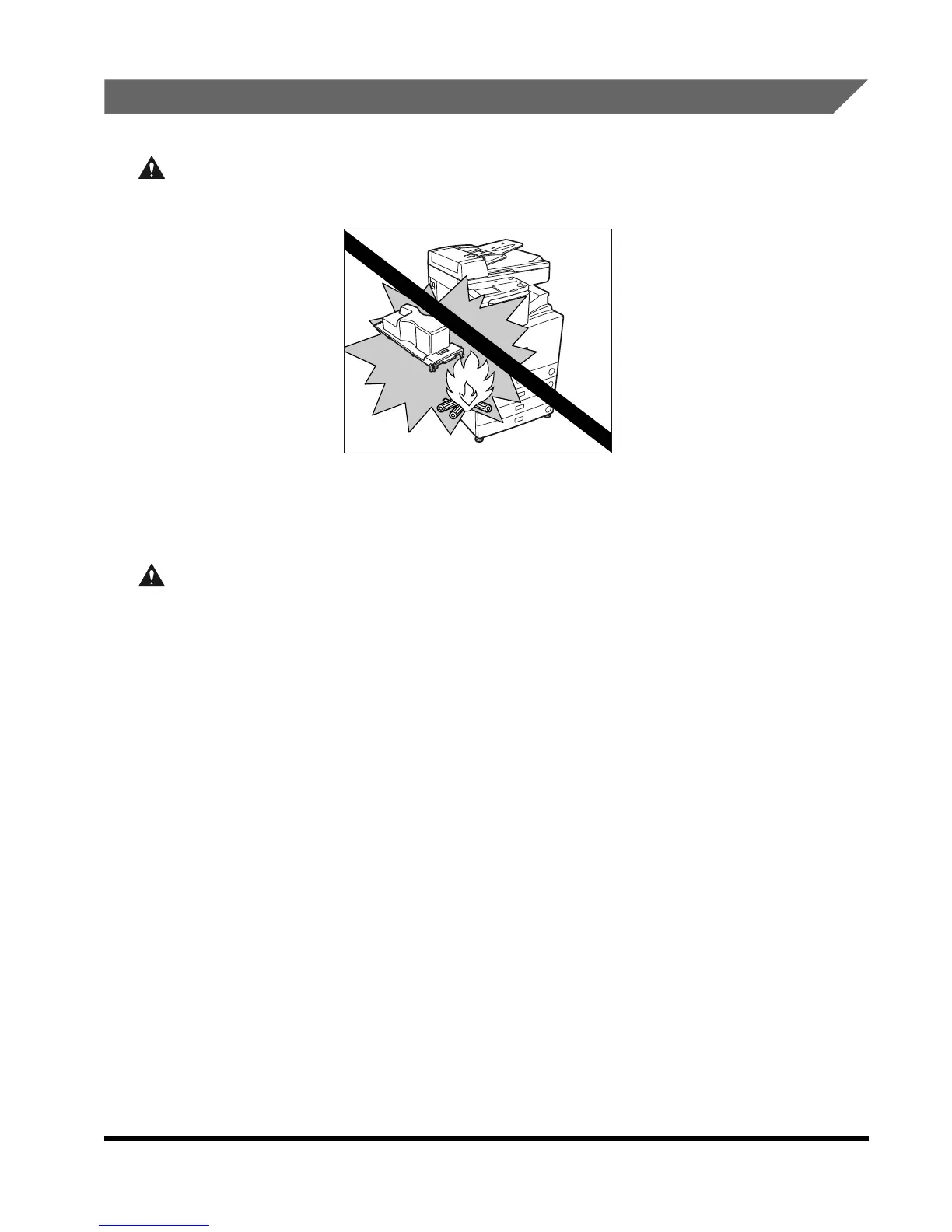 • Do not throw toner cartridges into open flames, as this may cause the toner to ignite and result