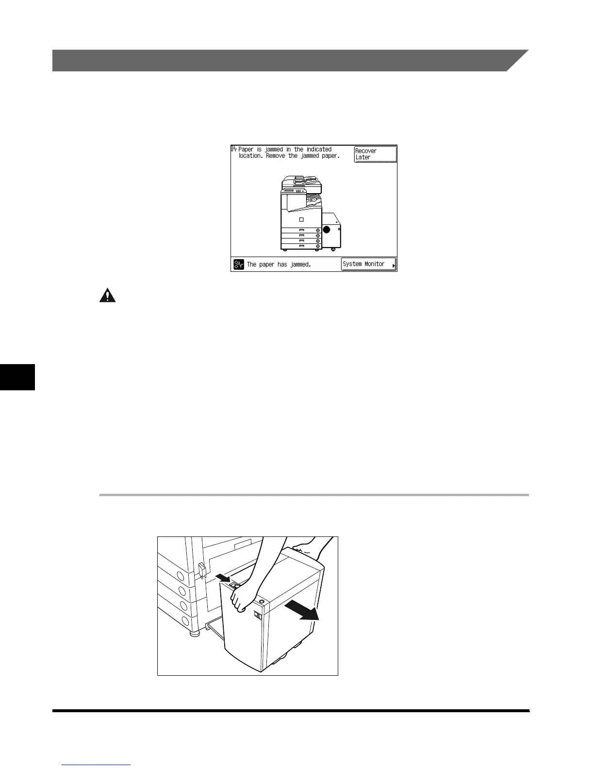 If a paper jam occurs in the Paper Deck-L1, a screen similar to the one shown below appears