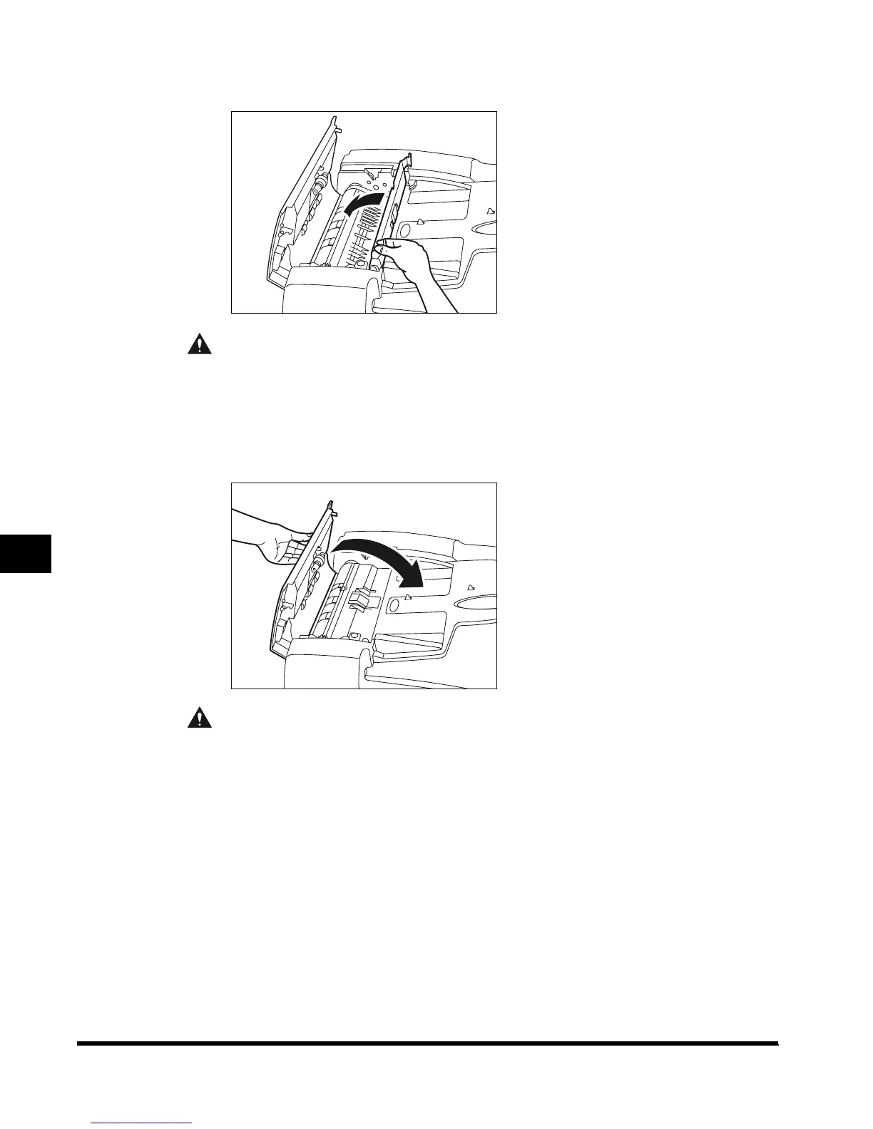 • When closing the cover, be careful not to get your fingers caught, as this may result