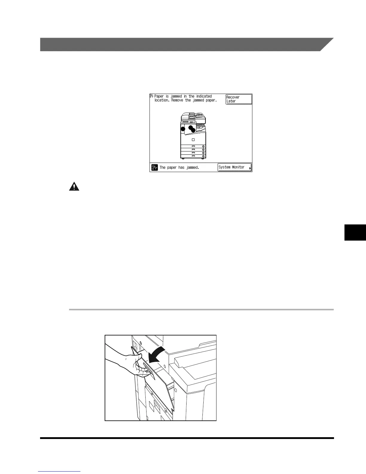 appears on the touch panel display. Check where the jam occurred, and follow the procedure
