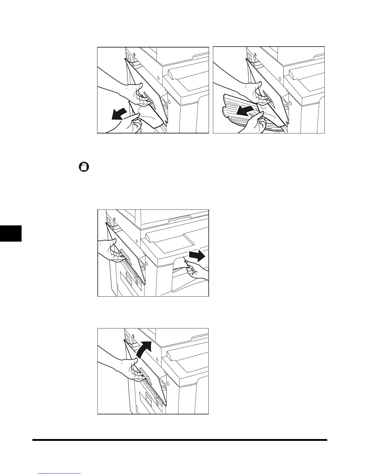 When removing the jammed paper, hold the left cover.