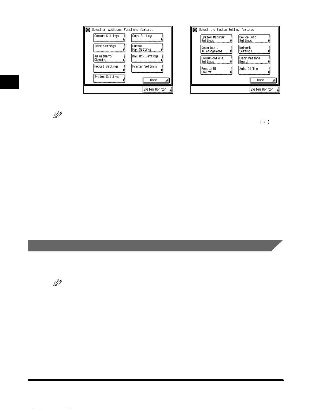 Network Settings and Remote UI On/Off functions, refer to the instruction manual attached to FAX