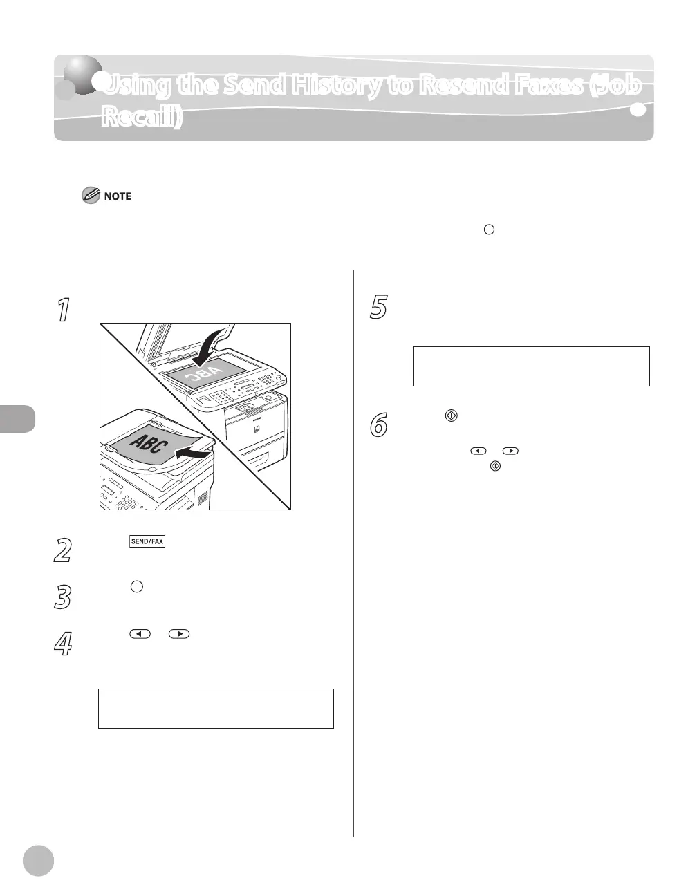 Using the Send History to Resend Faxes (Job Recall)