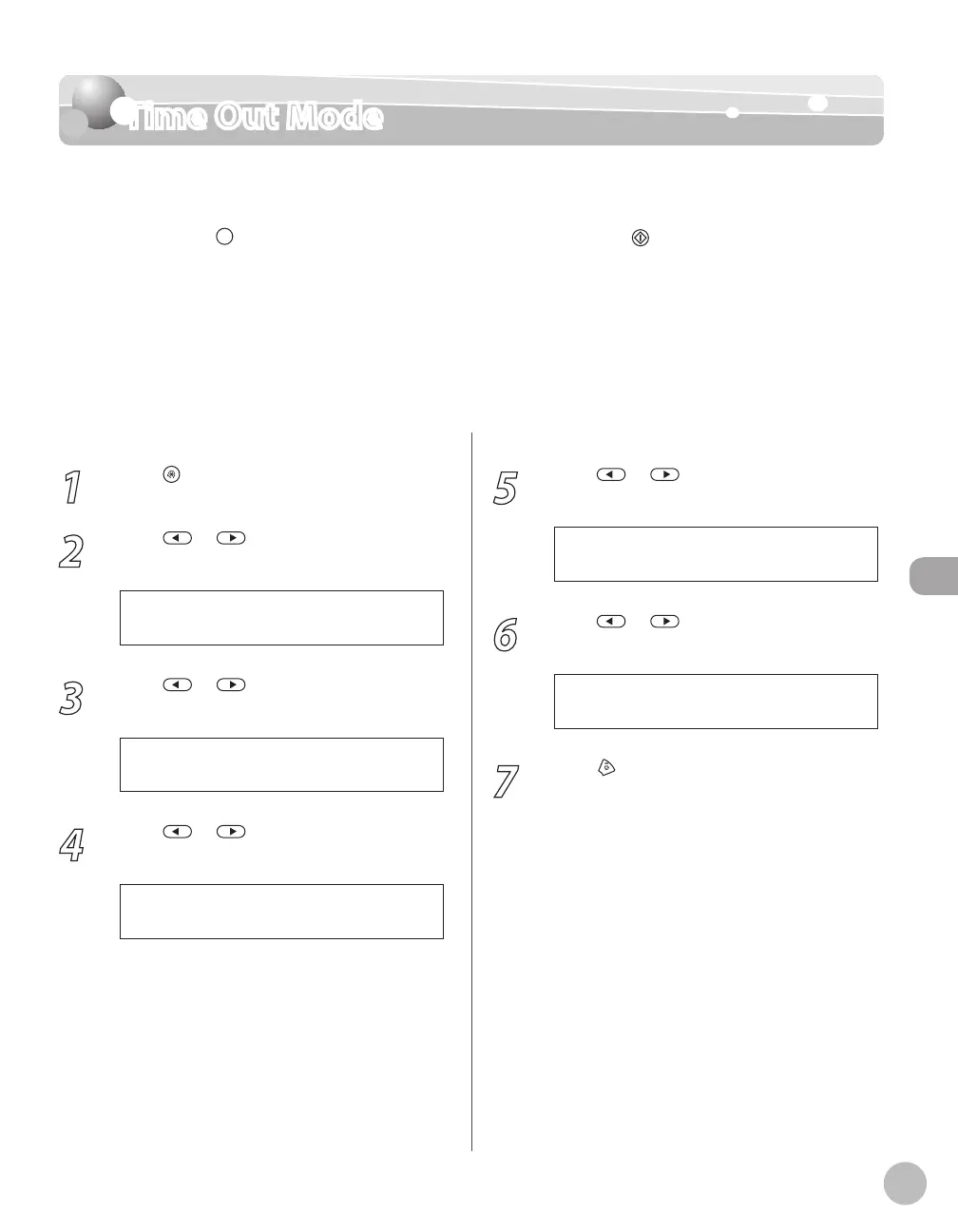 Time Out mode to <ON>, the machine pauses for five seconds after you specify a