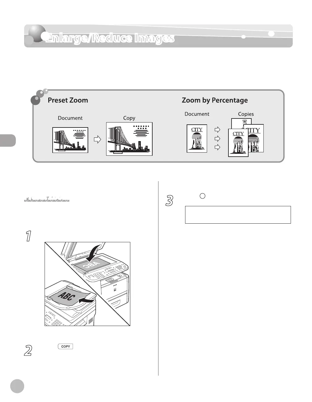zoom), or you can enlarge or reduce images in 1% increments (custom copy ratio). The