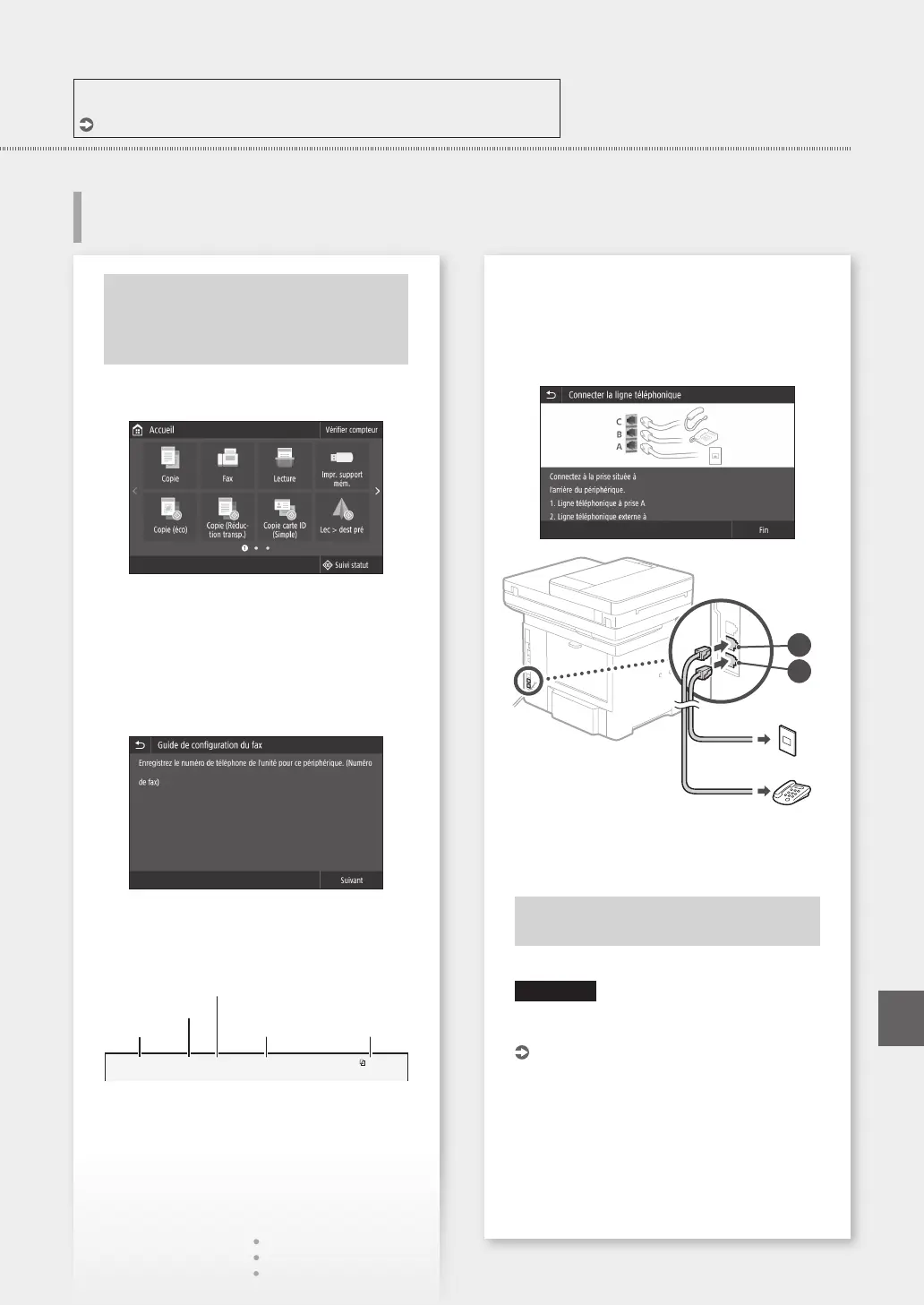 voir "Conguration des réglages initiaux du fax" dans le Guide de l'utilisateur