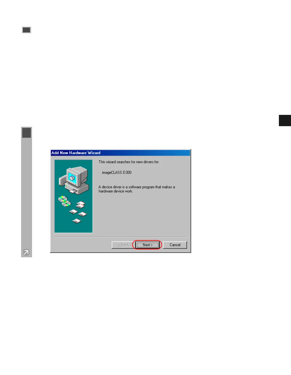 1 Plug and Play is being carried out and the Add New Hardware Wizard dialog box appears.