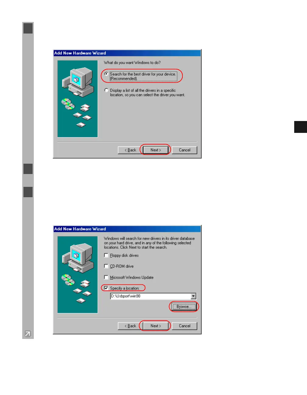 4 Select Specify a location (in Windows Me, Specify the location of the driver