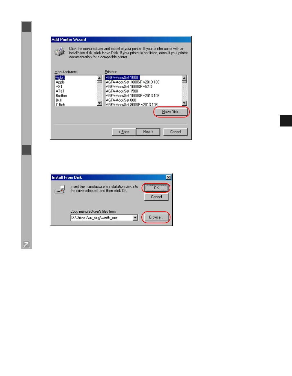4 The Wizard displays a list of available printers. Click Have Disk.
