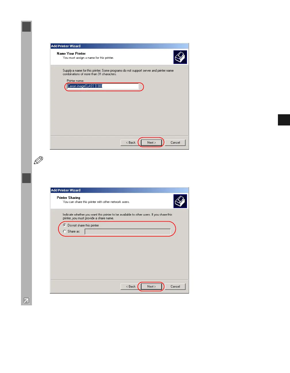 9 Click Next to accept the default printer name, or enter the name you wish to use click