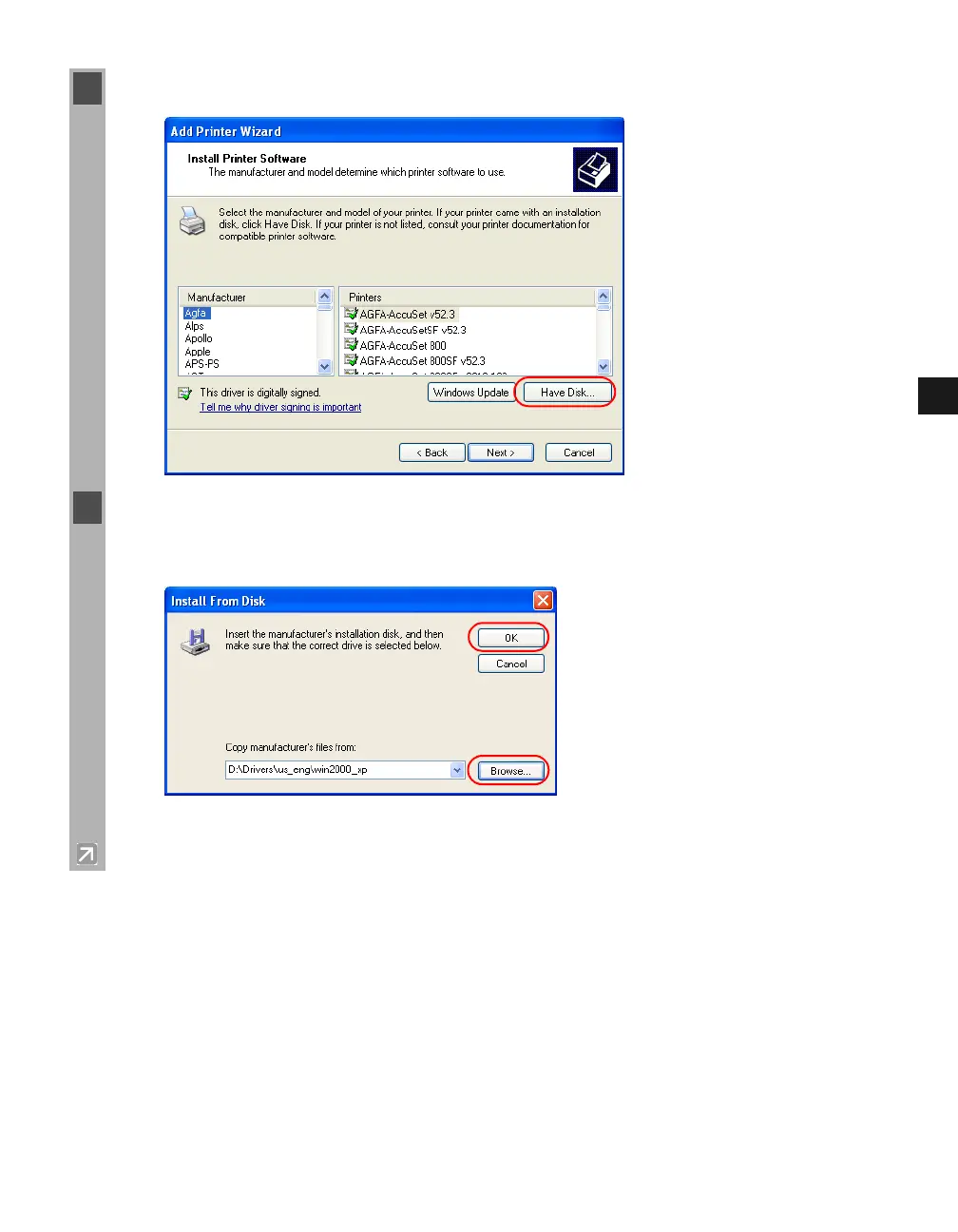 6 Click Have Disk in the Manufacturer/Printers dialog box.
